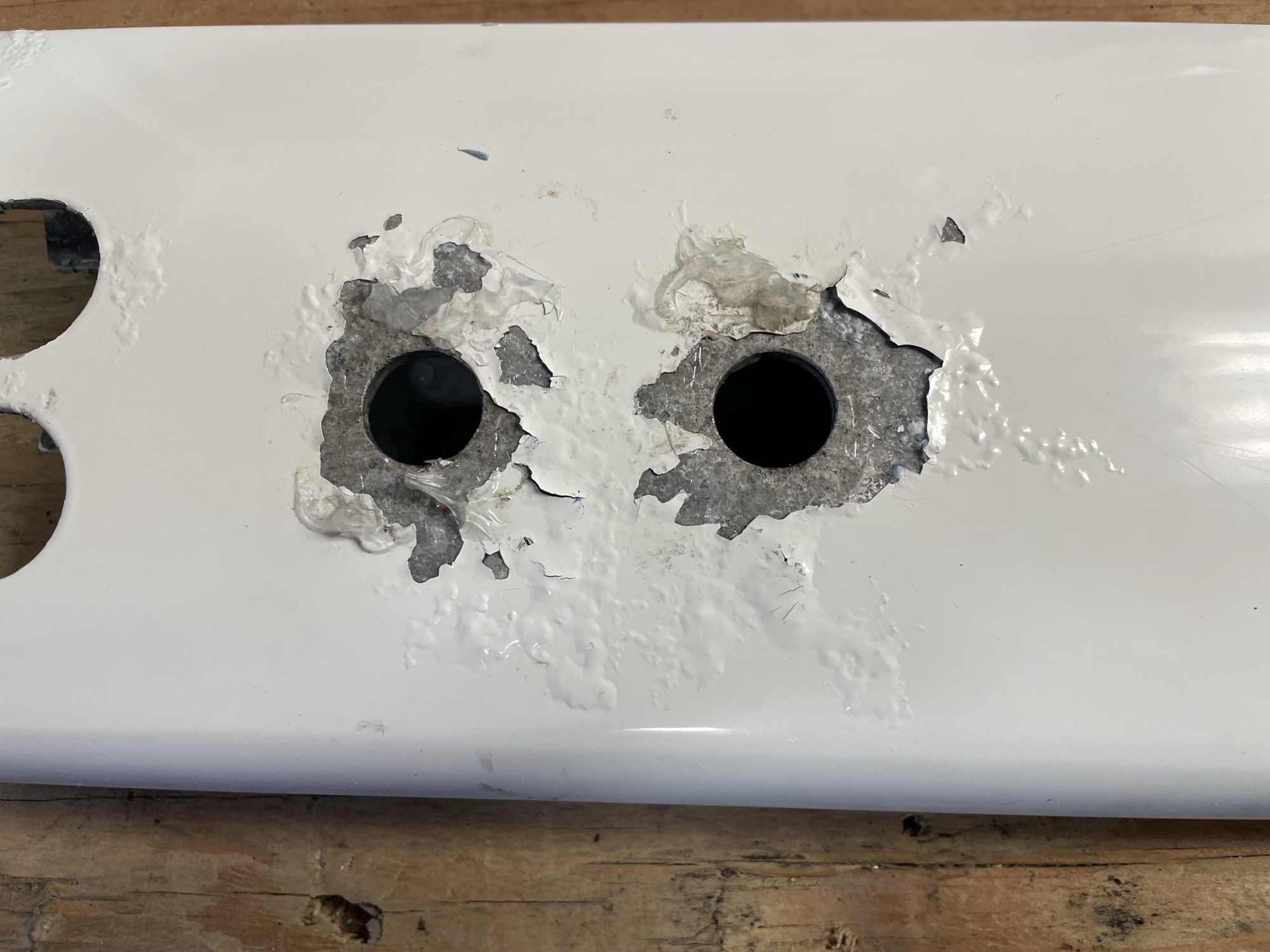 Another leak broke out on Blue Moon this past fall, once again caused by sloppy and inattentive work done by Hinckley Yacht Services up in Southwest Harbor, Maine. Under Blue Moon‘s prior ownership, all of the portholes and hatches on the boat were replaced a few years ago. Despite the recency of these installations, so far one porthole frame and the small deck hatch above the nav station have sprung leaks around the frame, in both cases due to inadequate preparation of the mating surfaces between the deck and the hardware. Operating on the assumption that the same (poor) process was followed for all of the deck hatches and portholes, I fully expect to have to re do all of the work Hinckley charged the prior owners many, many thousands of dollars to complete just a handful of years ago (we have the receipts!). The prior owners are wonderful people and had no reason to distrust Hinckley’s methods, particularly given the rates Hinckley charge. For the benefit of other Sabre owners, let’s walk through the right way to re bed portholes and hatches on a fiberglass boat and see where Hinckley cut corners and has thereby generated a ton of unnecessary work for us.